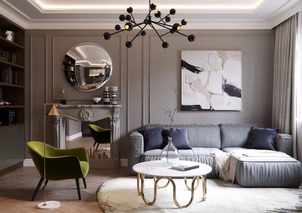 过多的纯色调看久了,会令人心情烦闷,所以墙面最好以浅色调为主。如果喜欢某种纯色调,可以用在家具、挂画等软装上,这样后期也方便更换。